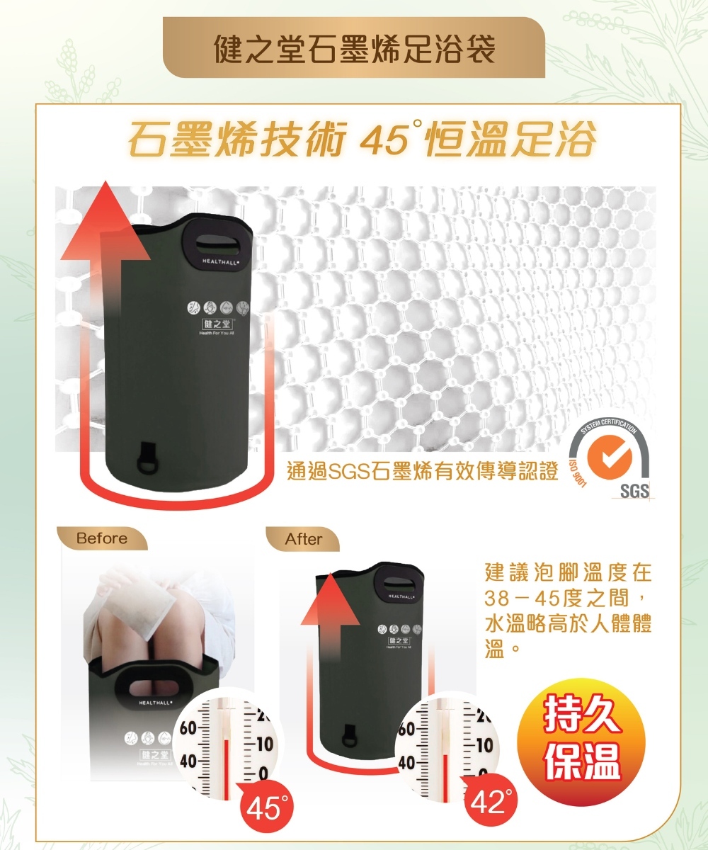 • 內含石墨烯技術,有效鎖緊熱力,高效持久保溫,泡腳中途也不需要加熱水