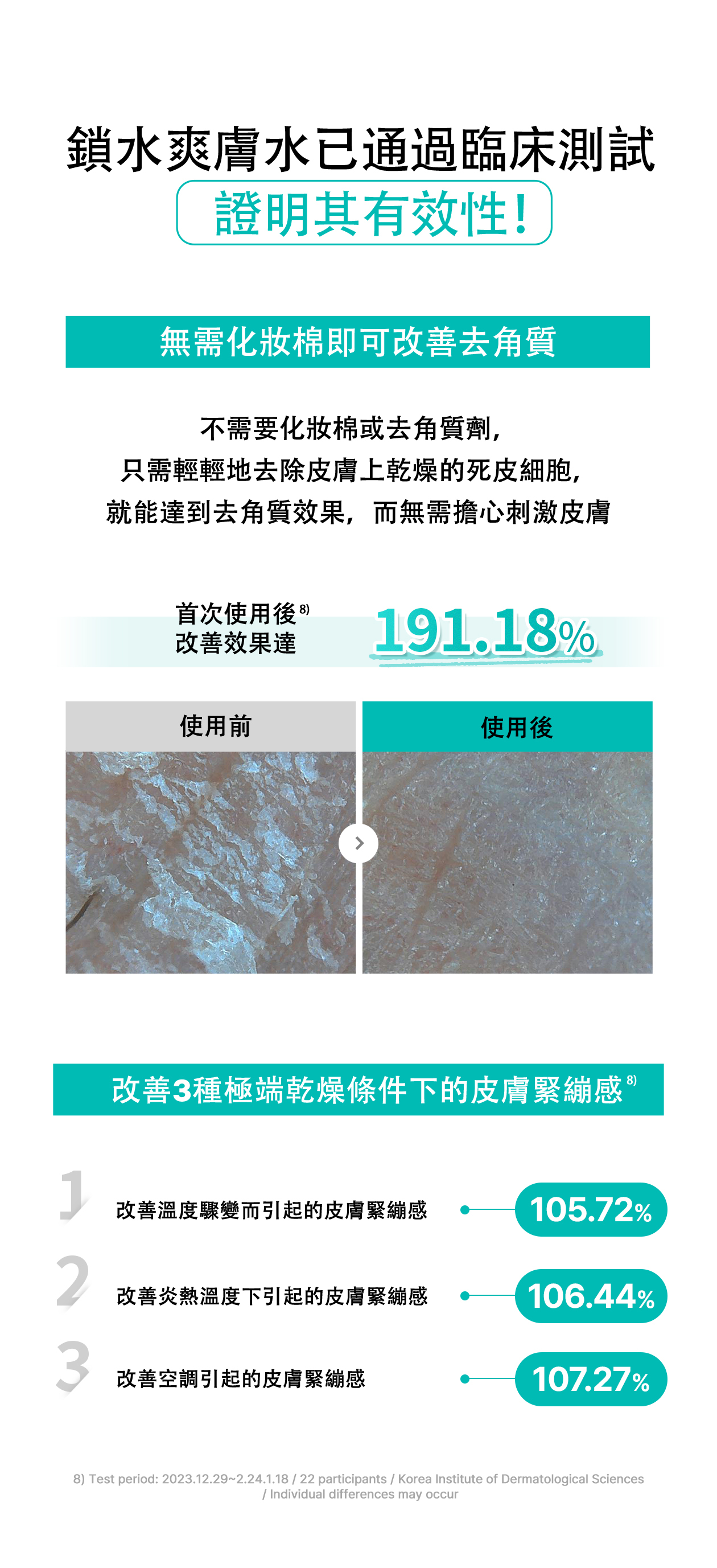 提升肌膚水分、光澤度、緊緻、及彈性